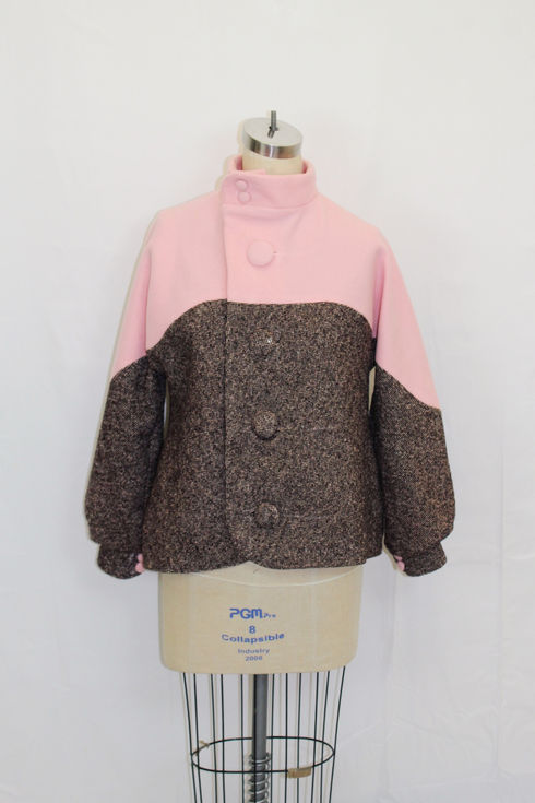 Maggie May is comprised of a 100% wool shell and polyester lining. It includes an asymmetrical front closure, high neck, cuffed sleeves, an inner welt pocket, and covered buttons.